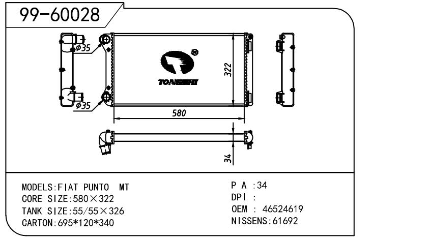 適用于寶馬 E30 320 i 82-93 AT散熱器OEM:1723 825/1719 261