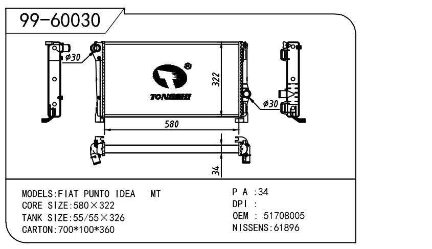 適用于寶馬E30 320 i 82-93 AT散熱器
