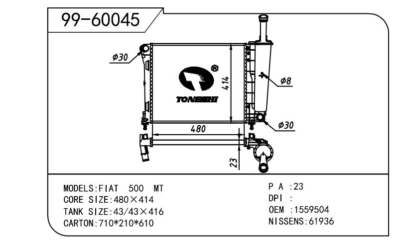 適用于奇瑞瑞虎(新款) MT散熱器 OEM : F1301000B1