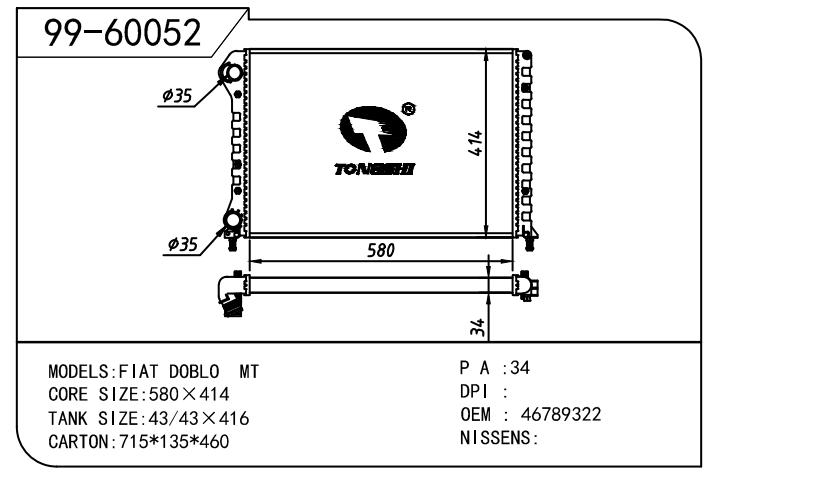 適用于奇瑞瑞虎(新款) MT散熱器 OEM : F1301000B1