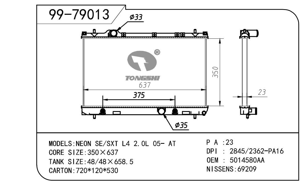 適用于奇瑞瑞虎(新款) MT散熱器 OEM : F1301000B1