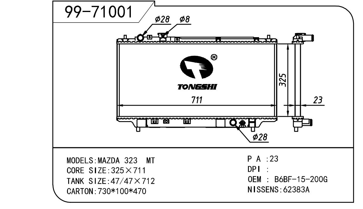 適用于奇瑞瑞虎(新款) MT散熱器 OEM : F1301000B1