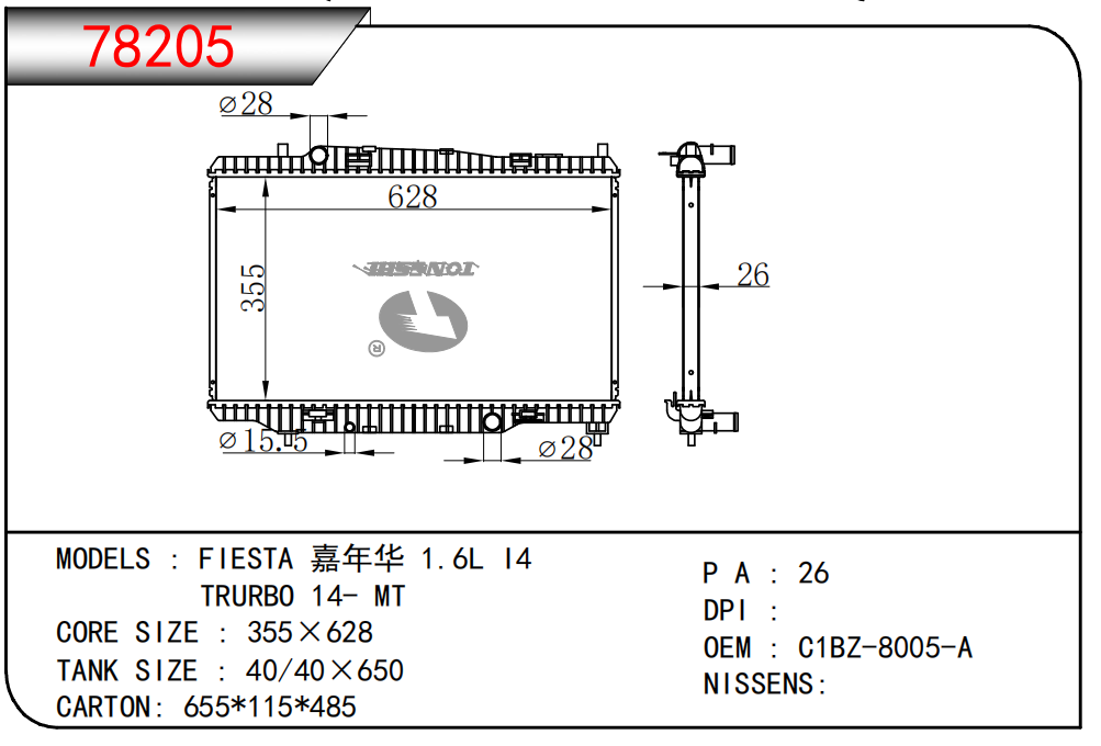 適用于奇瑞瑞虎(新款) MT散熱器 OEM : F1301000B1