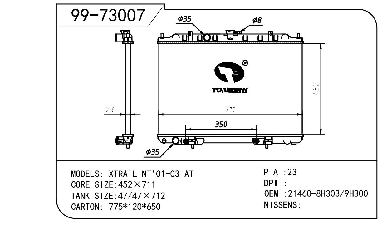適用于奇瑞瑞虎(新款) MT散熱器 OEM : F1301000B1