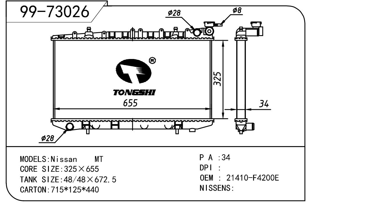 適用于奇瑞瑞虎(新款) MT散熱器 OEM : F1301000B1