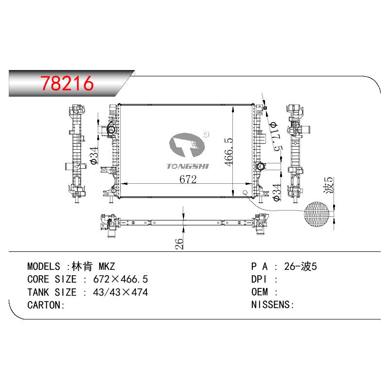 適用于奇瑞瑞虎(新款) MT散熱器 OEM : F1301000B1
