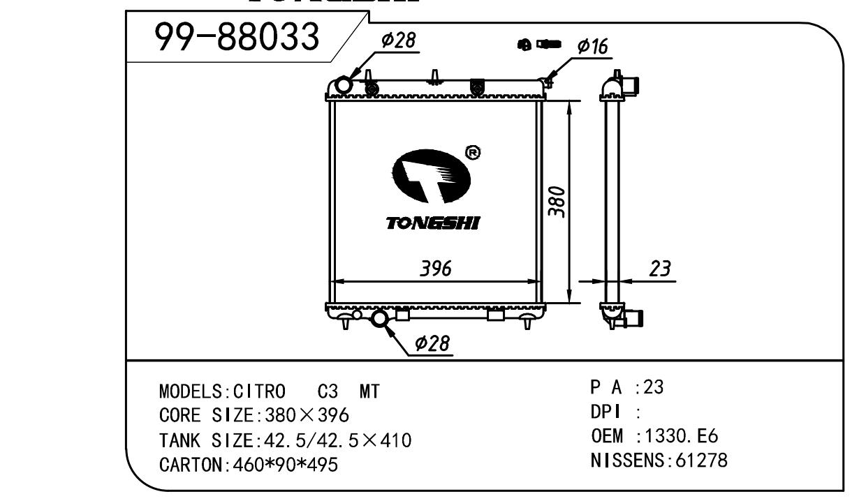 適用于奇瑞瑞虎(新款) MT散熱器 OEM : F1301000B1