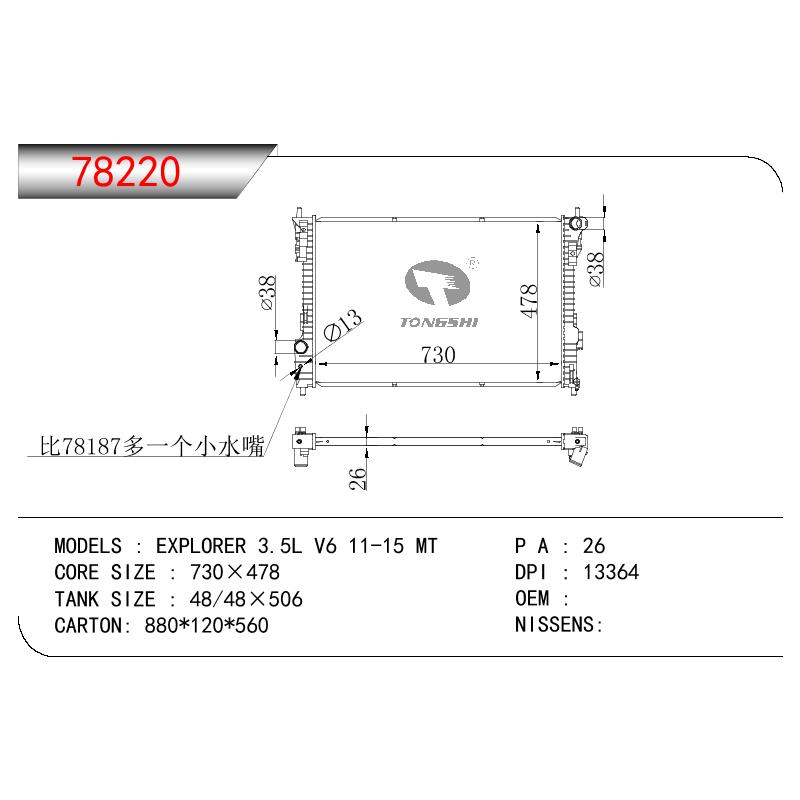 適用于奇瑞瑞虎(新款) MT散熱器 OEM : F1301000B1