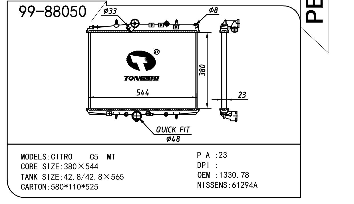 適用于奇瑞瑞虎(新款) MT散熱器 OEM : F1301000B1