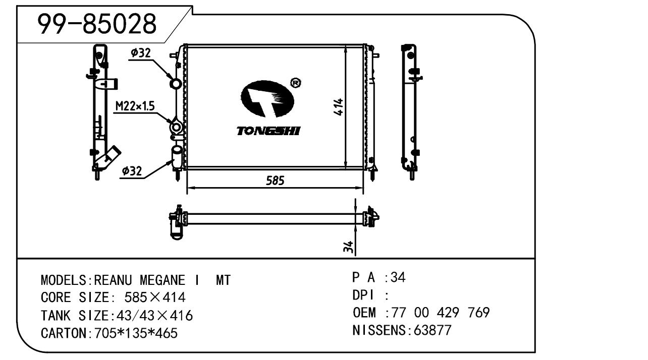 適用于寶馬 E30 320 i 82-93 AT散熱器OEM:1723 825/1719 261