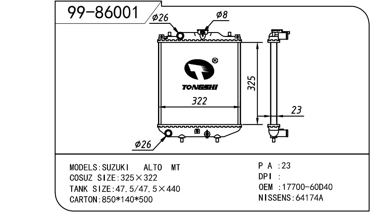 適用于奇瑞瑞虎(新款) MT散熱器 OEM : F1301000B1