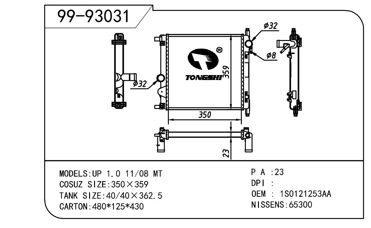 適用于奇瑞瑞虎(新款) MT散熱器 OEM : F1301000B1