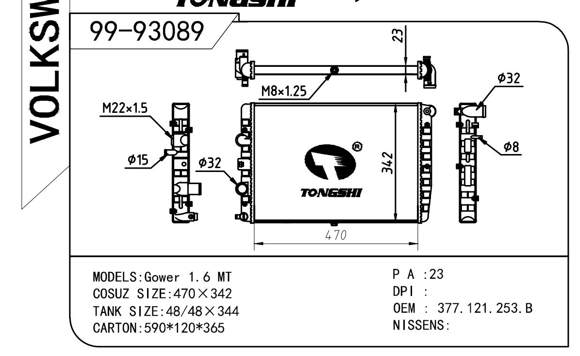 適用于寶馬 E30 320 i 82-93 AT散熱器OEM:1723 825/1719 261