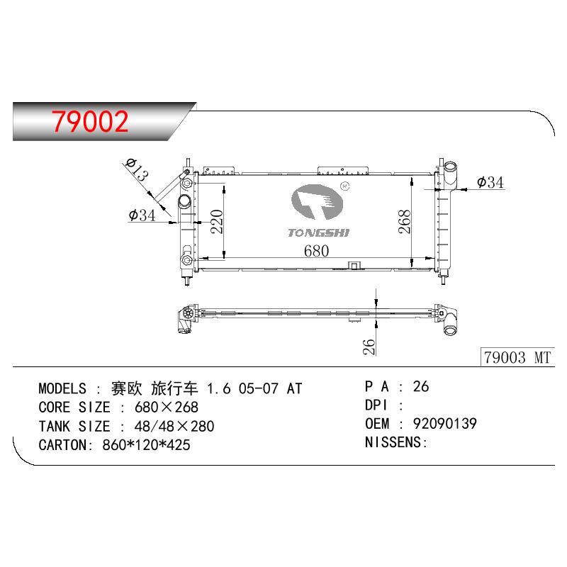 適用于奇瑞瑞虎(新款) MT散熱器 OEM : F1301000B1