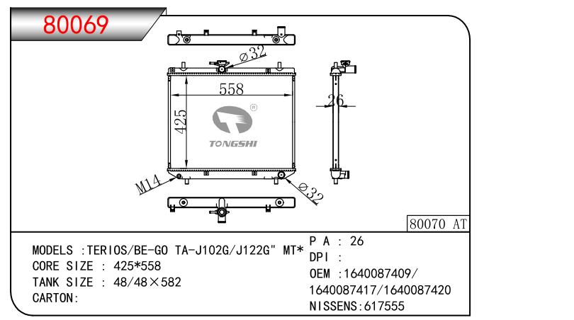 適用于奇瑞瑞虎(新款) MT散熱器 OEM : F1301000B1