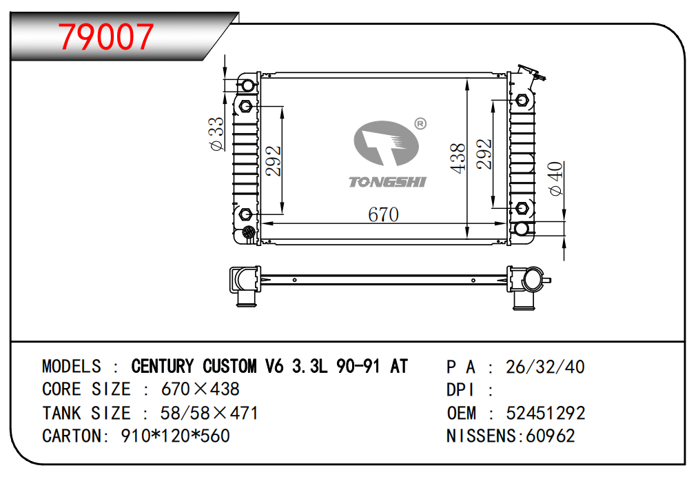 適用于奇瑞瑞虎(新款) MT散熱器 OEM : F1301000B1