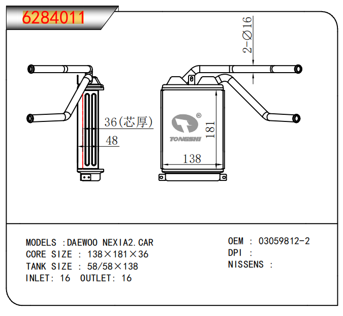 適用于奇瑞瑞虎(新款) MT散熱器 OEM : F1301000B1