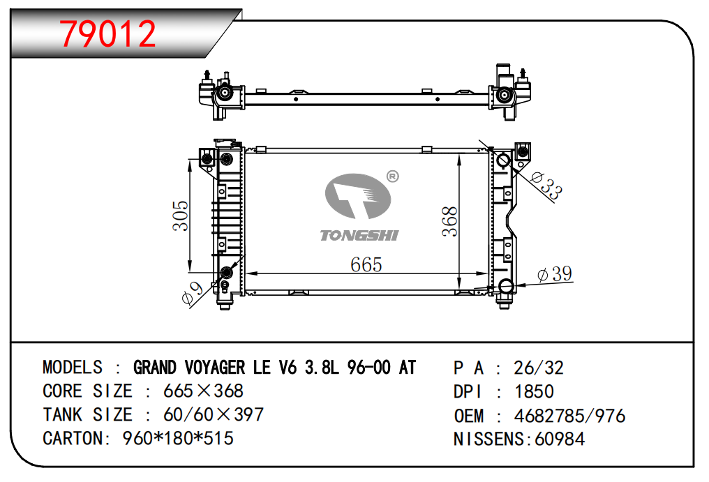 適用于奇瑞瑞虎(新款) MT散熱器 OEM : F1301000B1