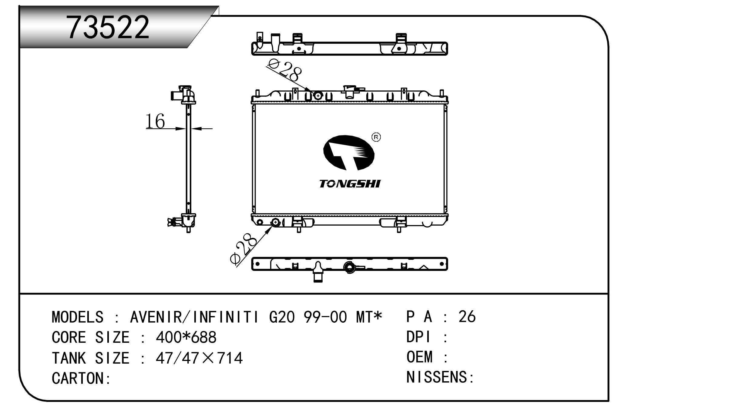 適用于奇瑞瑞虎(新款) MT散熱器 OEM : F1301000B1