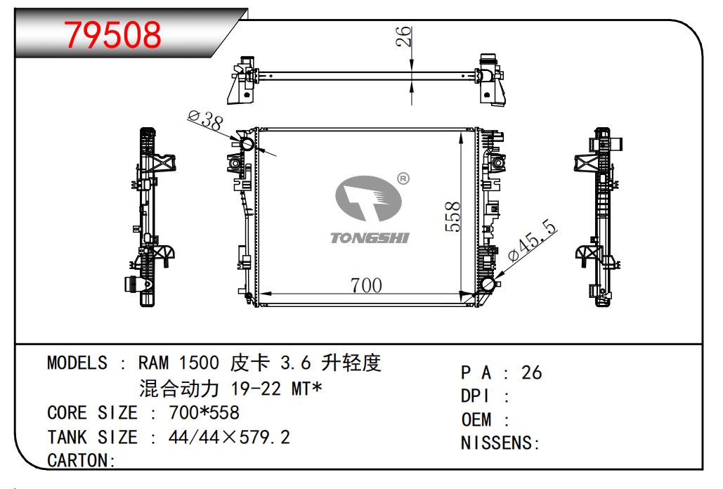 適用于奇瑞瑞虎(新款) MT散熱器 OEM : F1301000B1