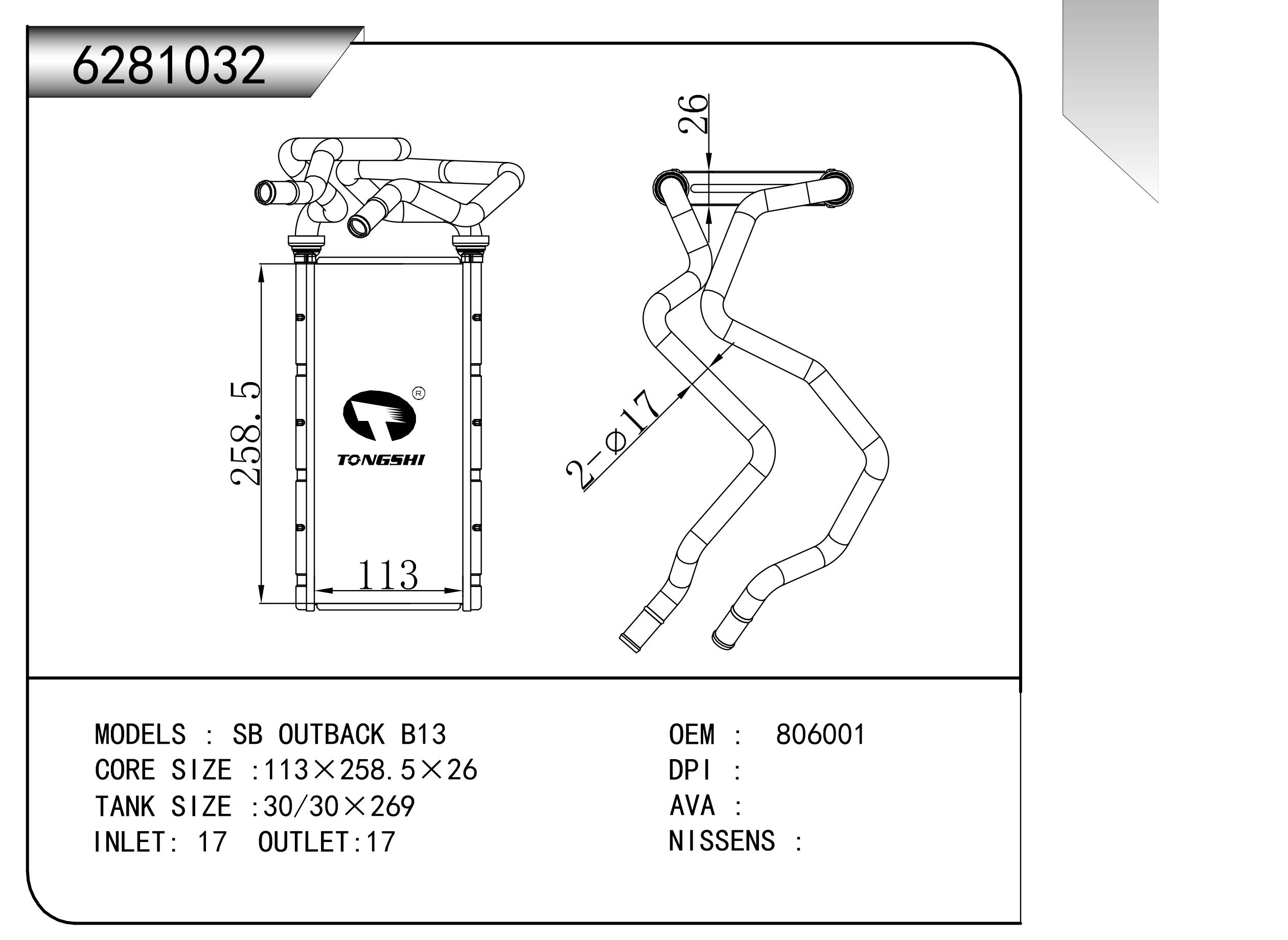 適用于奇瑞瑞虎(新款) MT散熱器 OEM : F1301000B1