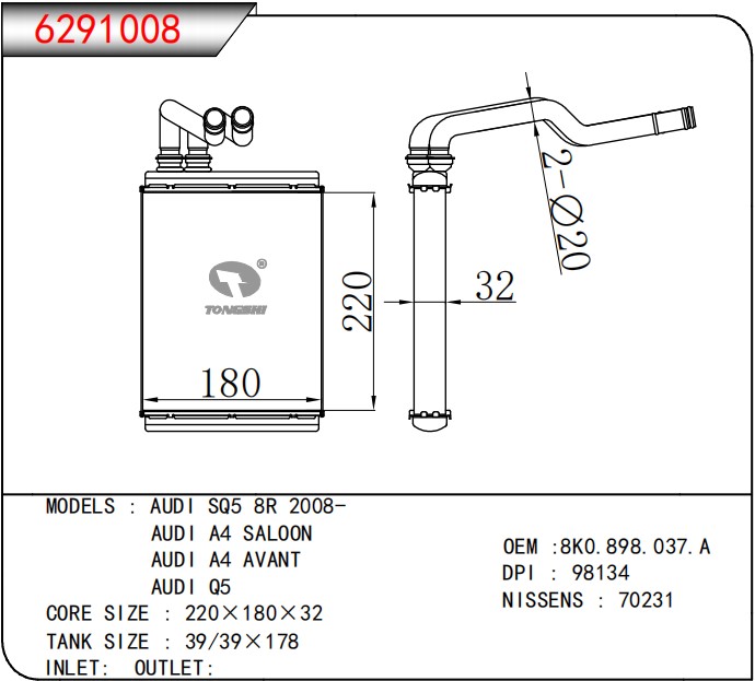 適用于奇瑞瑞虎(新款) MT散熱器 OEM : F1301000B1
