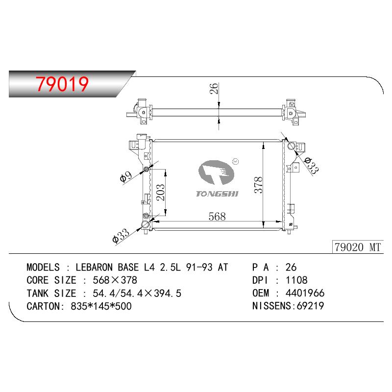 適用于奇瑞瑞虎(新款) MT散熱器 OEM : F1301000B1
