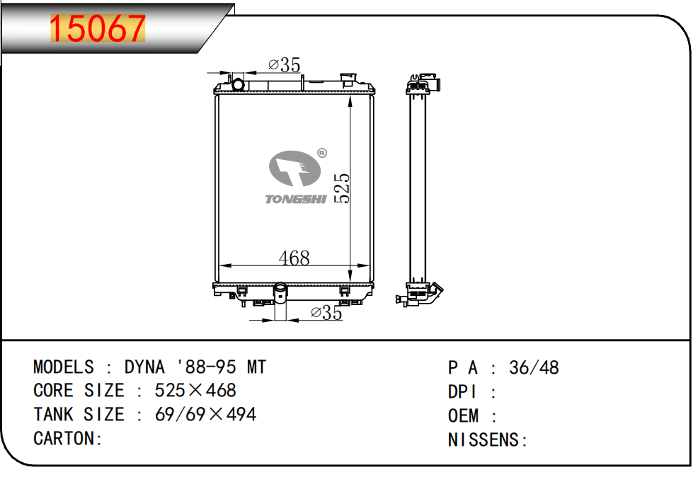 適用于奇瑞瑞虎(新款) MT散熱器 OEM : F1301000B1