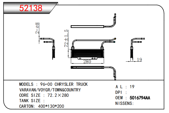 適用于奇瑞瑞虎(新款) MT散熱器 OEM : F1301000B1