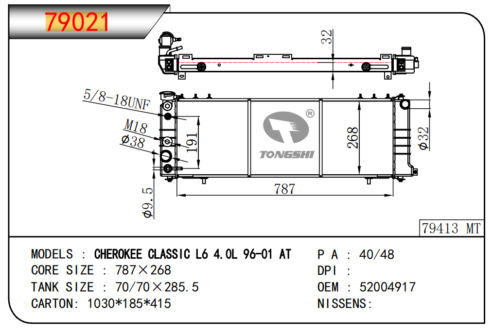 適用于奇瑞瑞虎(新款) MT散熱器 OEM : F1301000B1