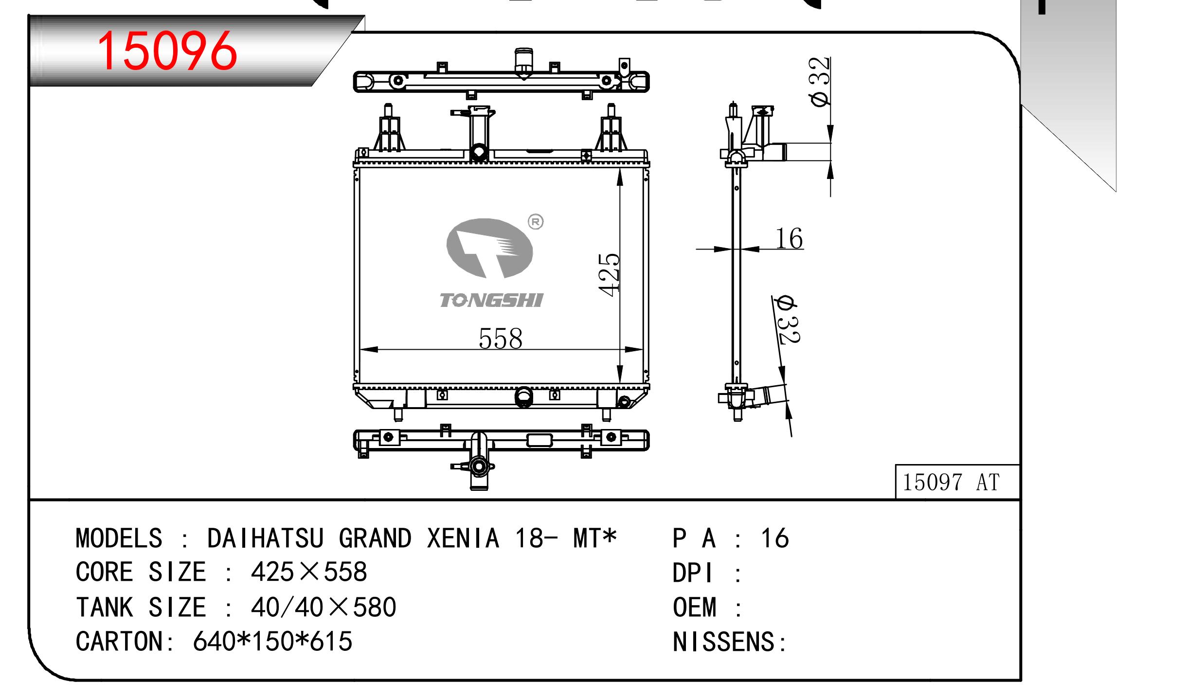 適用于奇瑞瑞虎(新款) MT散熱器 OEM : F1301000B1