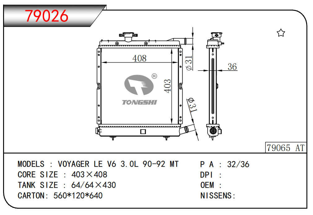 適用于寶馬 E30 320 i 82-93 AT散熱器OEM:1723 825/1719 261
