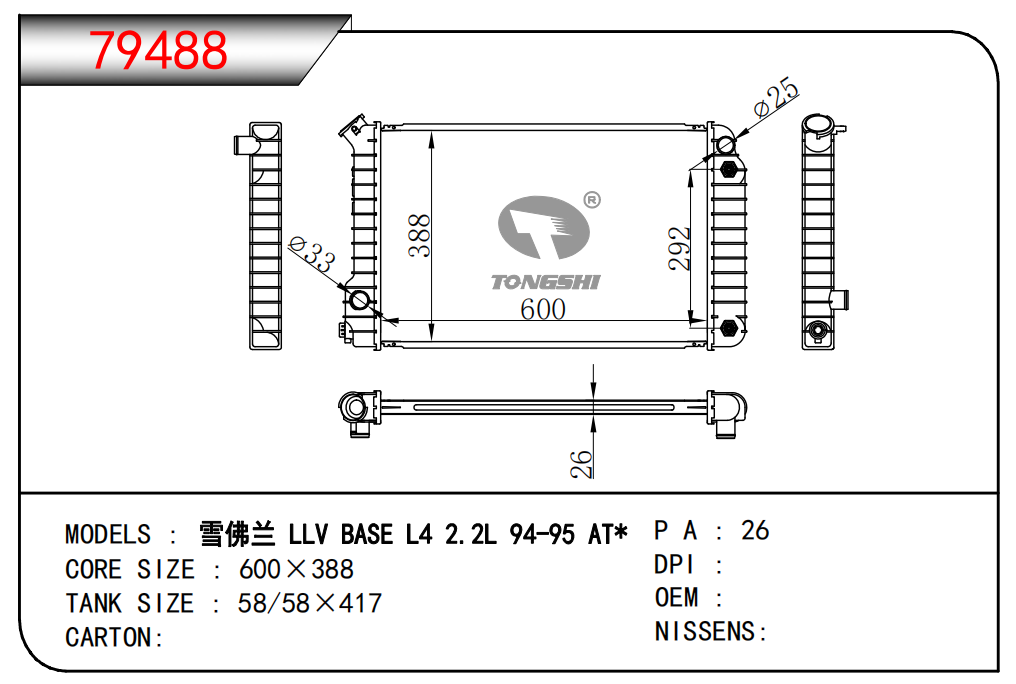 適用于奇瑞瑞虎(新款) MT散熱器 OEM : F1301000B1