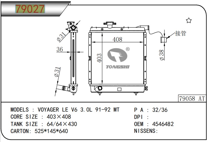 適用于寶馬 E30 320 i 82-93 AT散熱器OEM:1723 825/1719 261