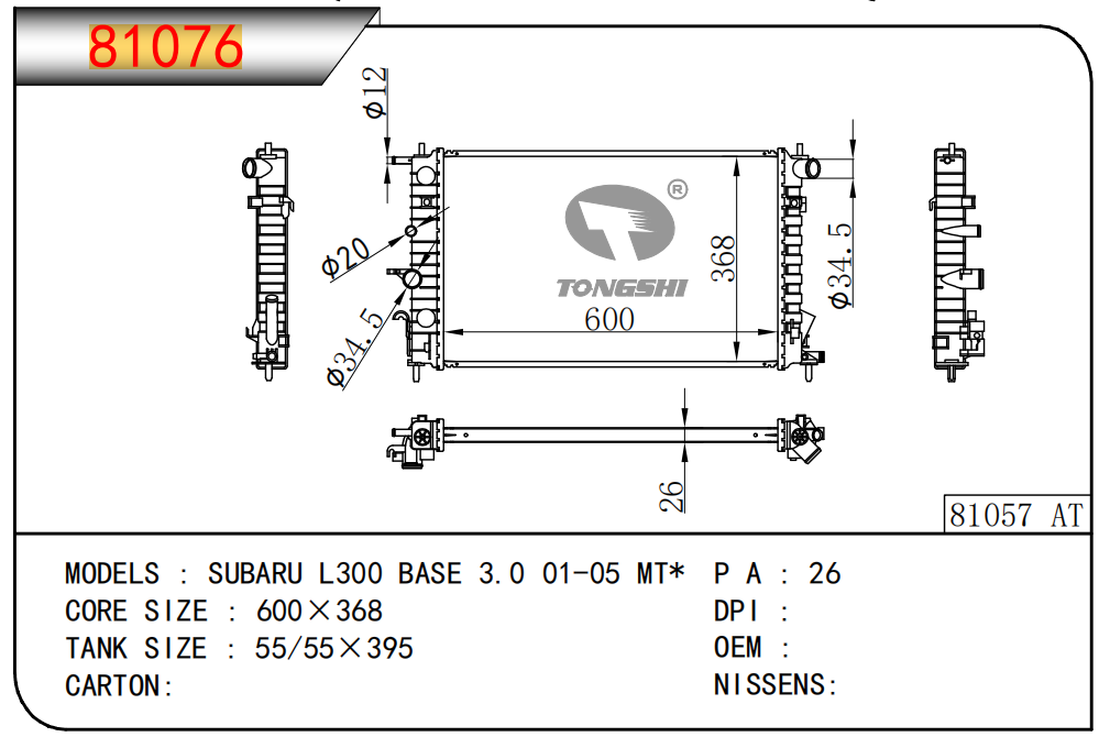 適用于奇瑞瑞虎(新款) MT散熱器 OEM : F1301000B1