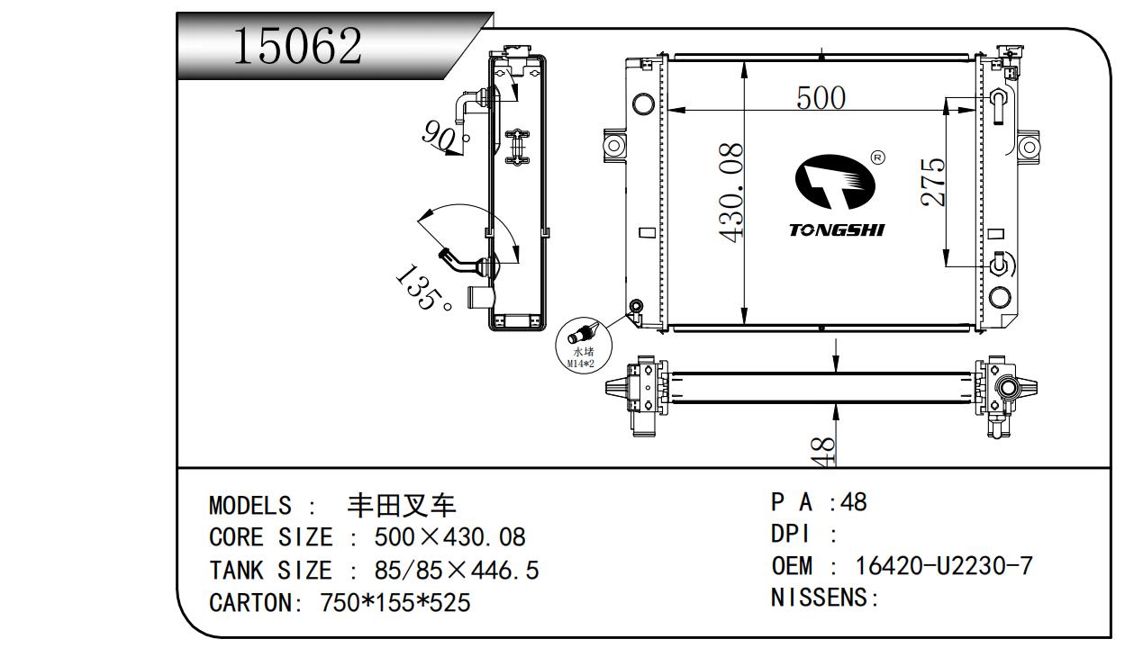 適用于奇瑞瑞虎(新款) MT散熱器 OEM : F1301000B1