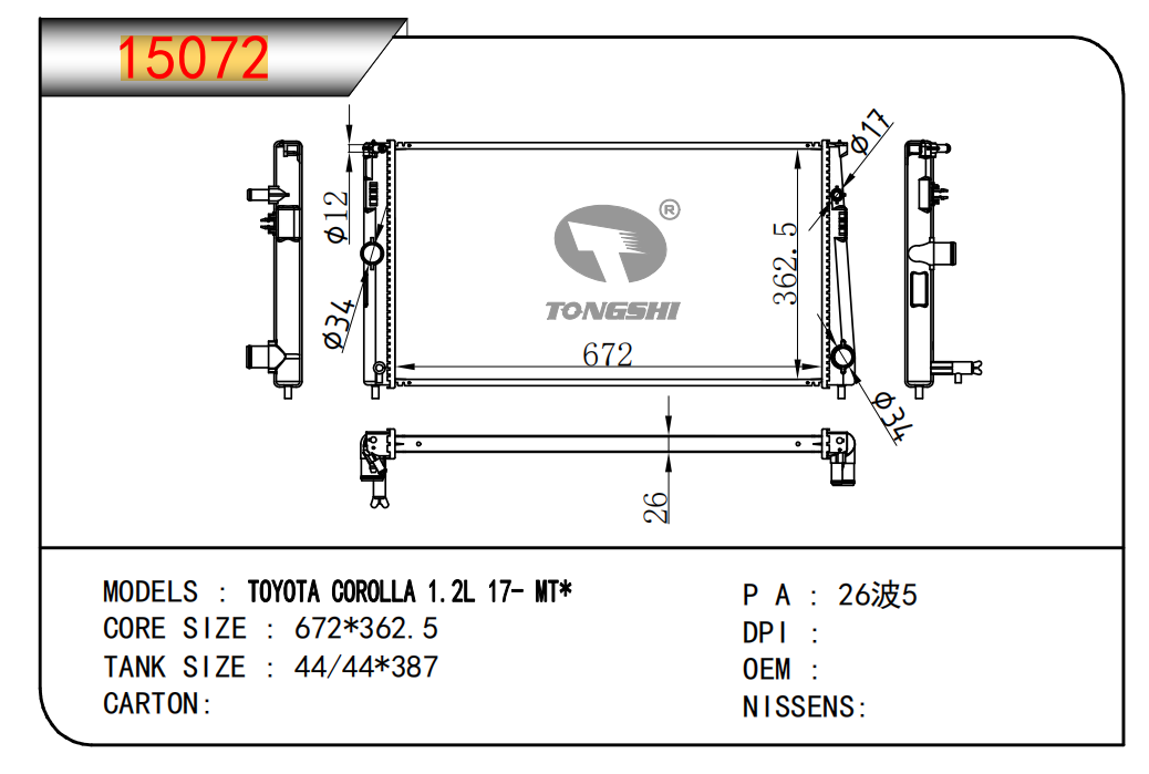 適用于奇瑞瑞虎(新款) MT散熱器 OEM : F1301000B1