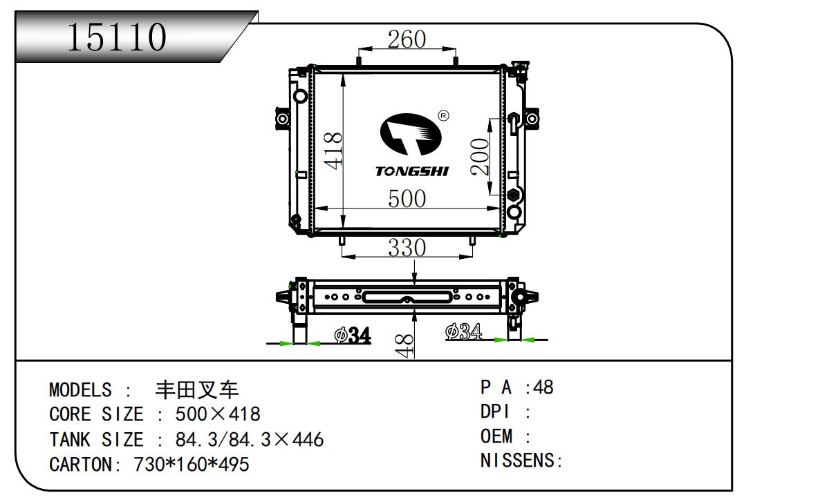 適用于奇瑞瑞虎(新款) MT散熱器 OEM : F1301000B1