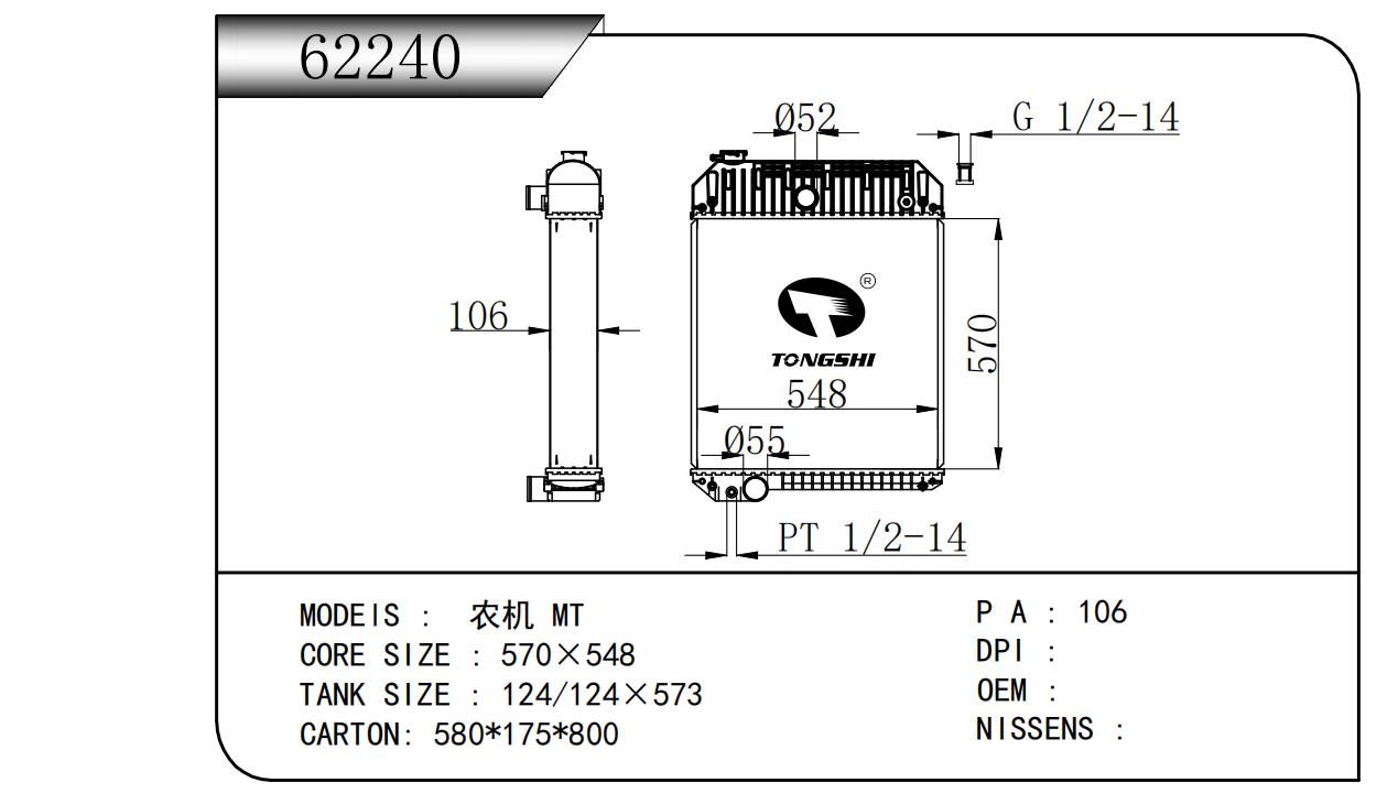 適用于奇瑞瑞虎(新款) MT散熱器 OEM : F1301000B1
