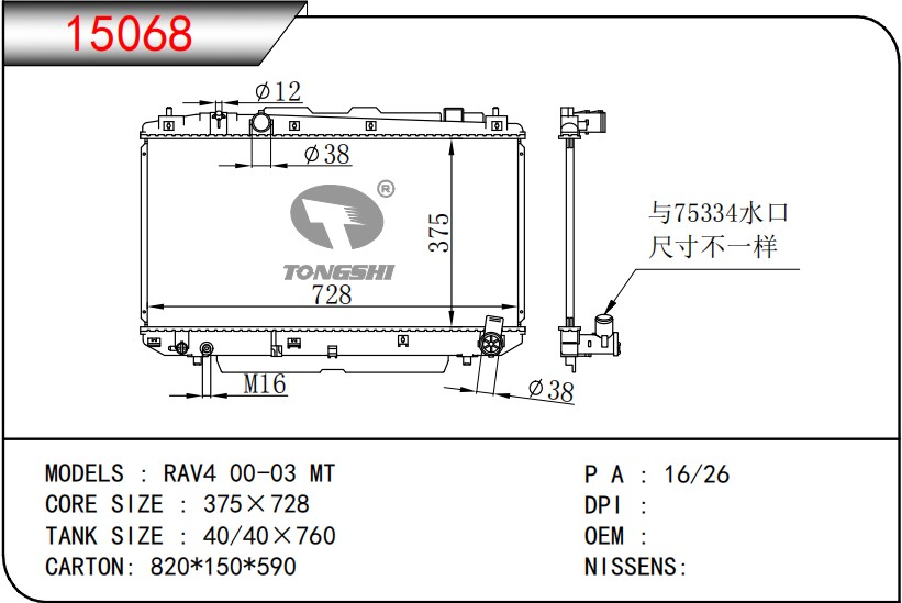 適用于奇瑞瑞虎(新款) MT散熱器 OEM : F1301000B1