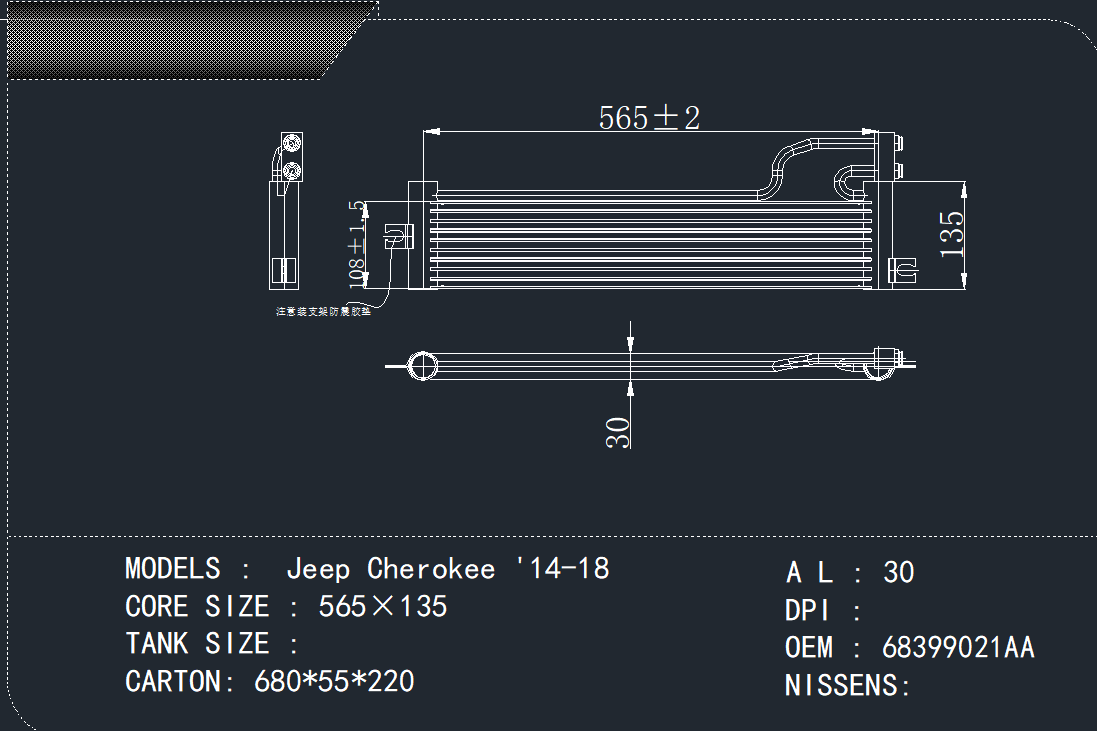 適用于奇瑞瑞虎(新款) MT散熱器 OEM : F1301000B1