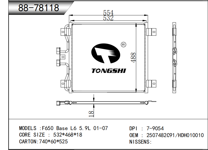 適用于FREIGHTLINER CASCADIA 125/ 113 L6 12.8L 12-13 AT散熱器