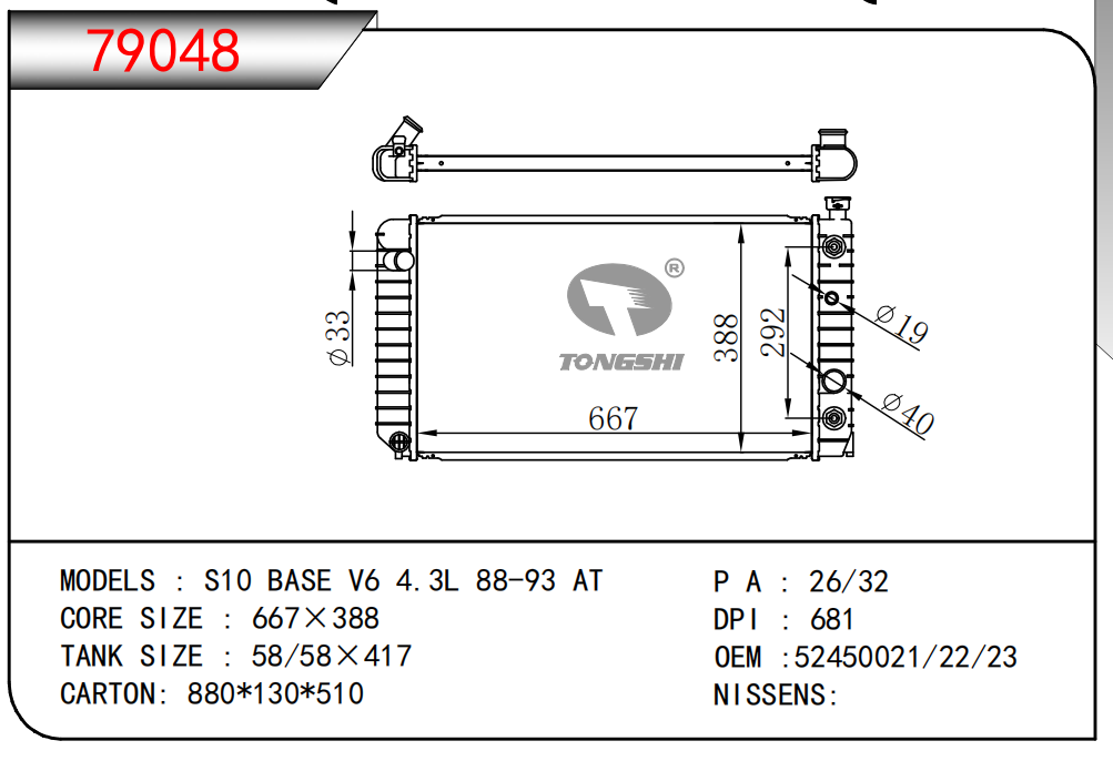 適用于奇瑞瑞虎(新款) MT散熱器 OEM : F1301000B1