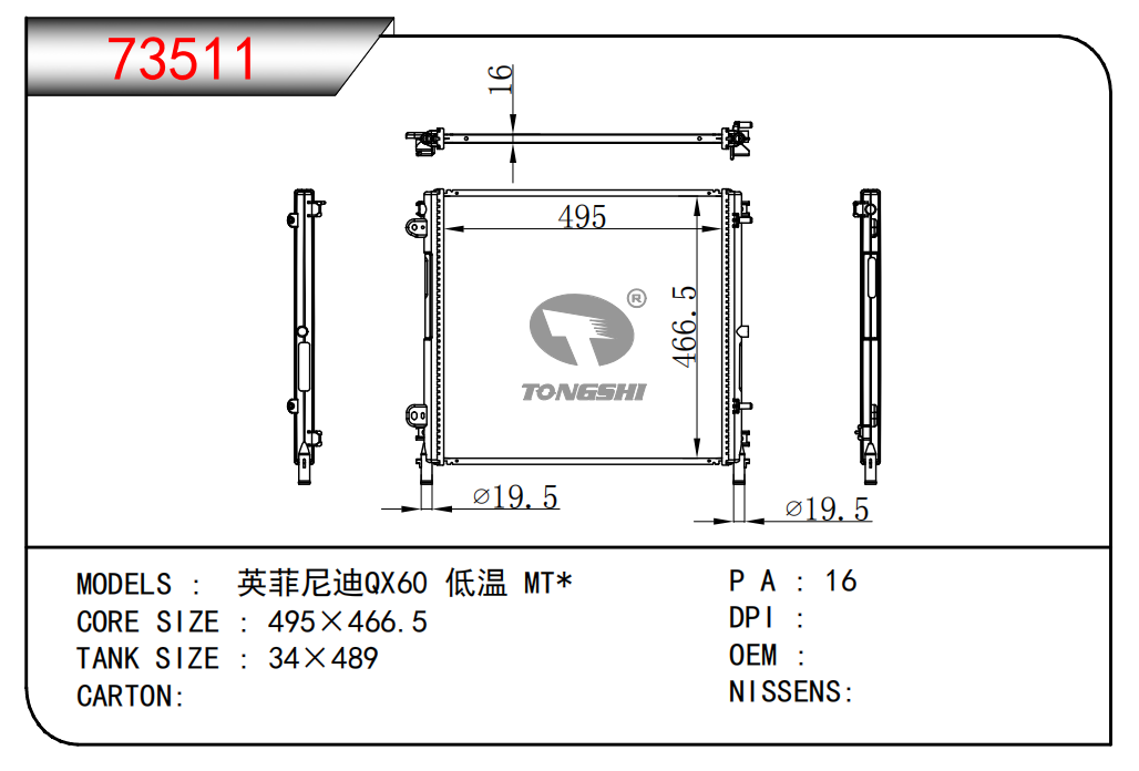 適用于奇瑞瑞虎(新款) MT散熱器 OEM : F1301000B1