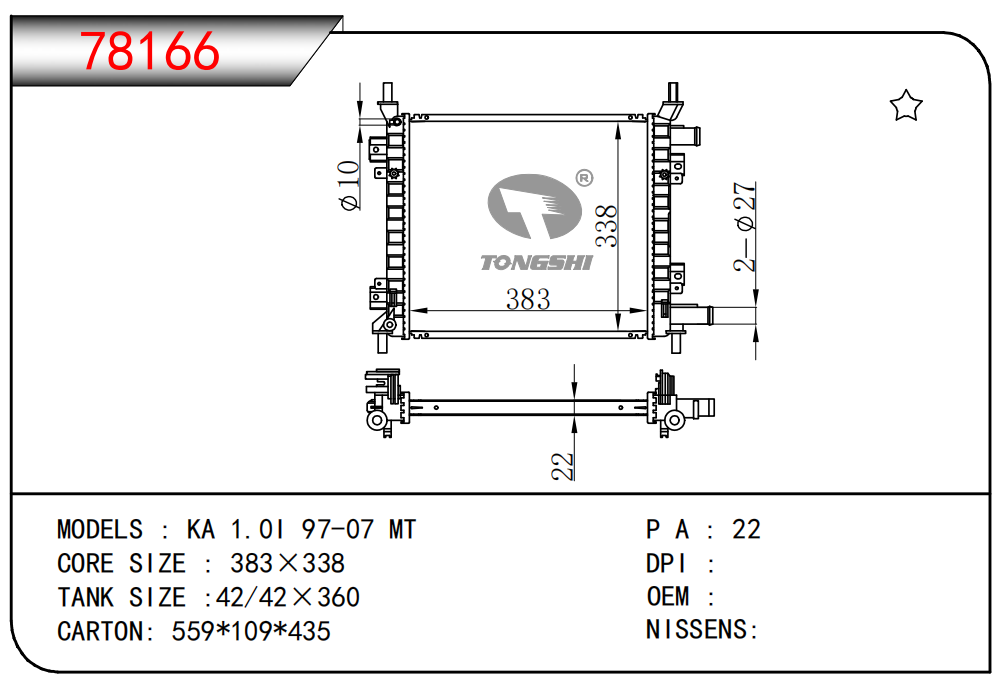 適用于奇瑞瑞虎(新款) MT散熱器 OEM : F1301000B1