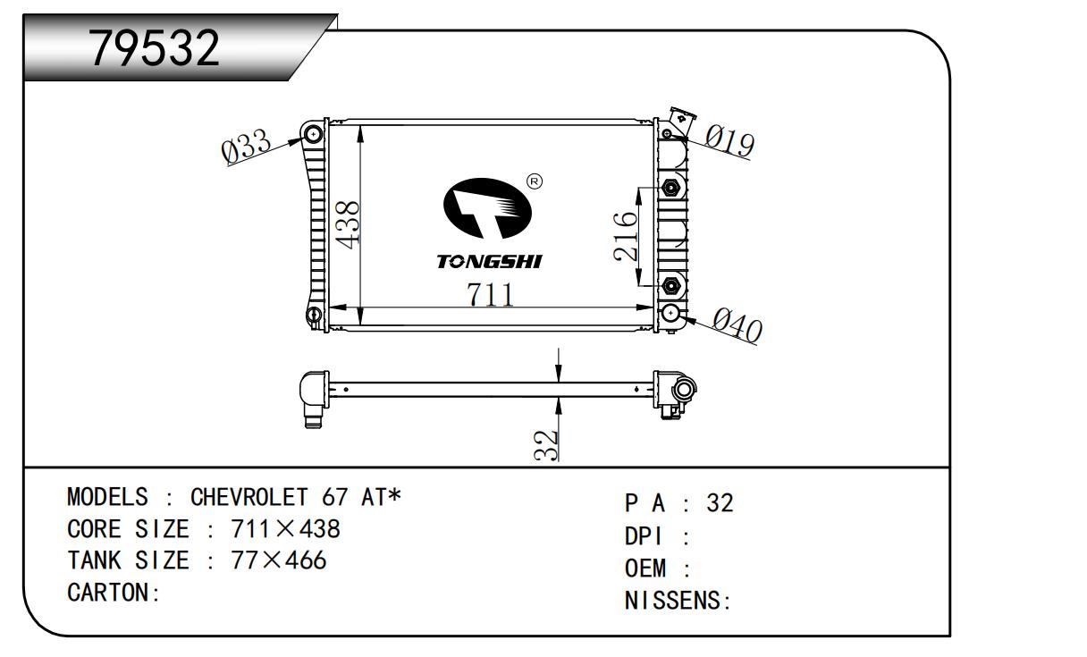 適用于奇瑞瑞虎(新款) MT散熱器 OEM : F1301000B1
