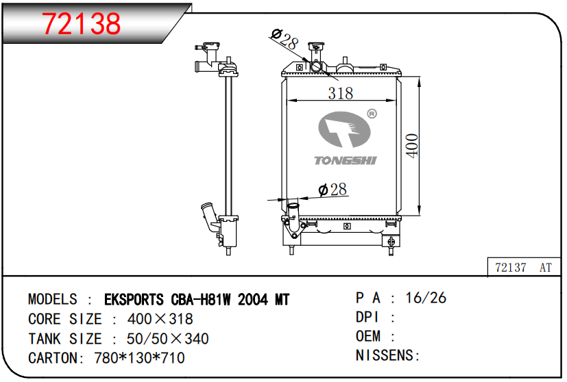 適用于寶馬 E30 320 i 82-93 AT散熱器OEM:1723 825/1719 261