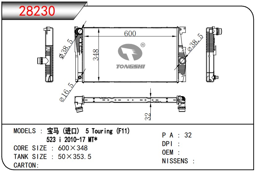 適用于寶馬 E30 320 i 82-93 AT散熱器OEM:1723 825/1719 261