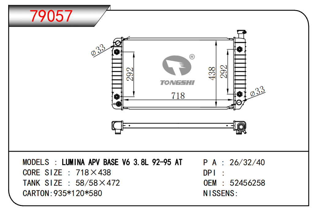 適用于寶馬 E30 320 i 82-93 AT散熱器OEM:1723 825/1719 261