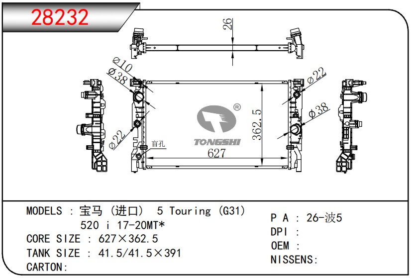 適用于寶馬 E30 320 i 82-93 AT散熱器OEM:1723 825/1719 261